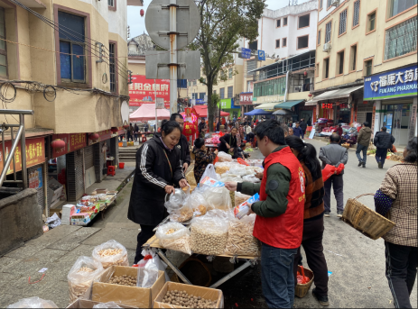 春节前夕的赶集日,前来置办年货的群众人流如潮。普法宣传摊位一设立,立即吸引了过往的群众上前咨询和围观,统一着装的工作人员一边耐心地答复前来咨询的群众,一边亲切地把“法治年货大礼包”送到群众手中。本次宣传活动发放的“法治年货大礼包”,包含了印有普法标语的环保袋、盒装纸巾、纸杯和普法宣传资料,内容涵盖了国家安全、禁毒、扫黑除恶、信访、反诈骗、反邪教、反非法集资、婚姻家庭等。