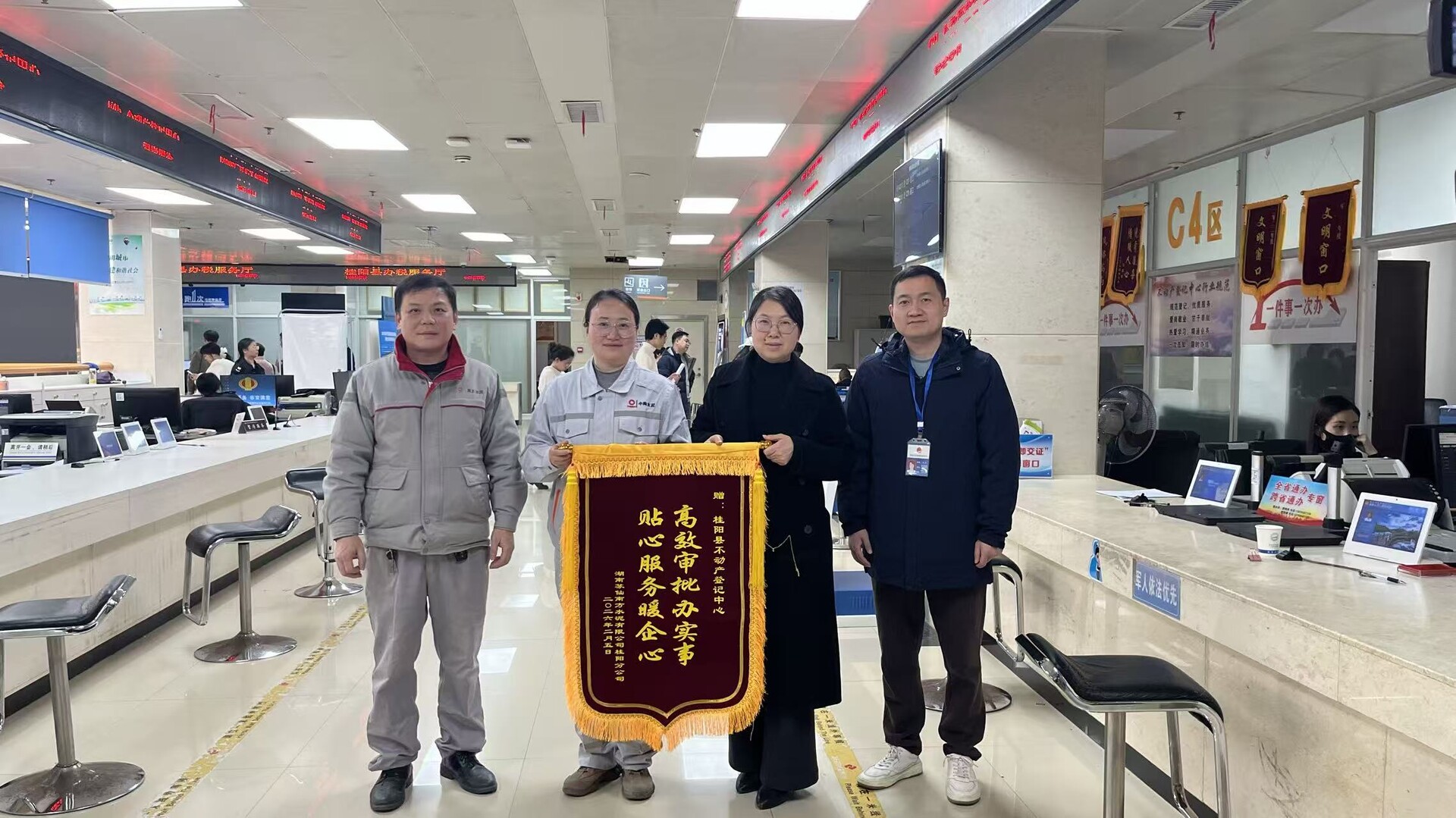 近日,湖南苏仙南方水泥有限公司桂阳分公司负责人专程来到县不动产登记中心,将一面印有“高效审批办实事 贴心服务暖企心”的锦旗送到中心工作人员手中,对中心高效解决企业历史遗留办证难题表示感谢。