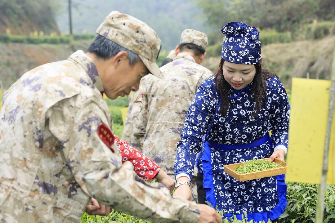 桥市乡宣传委员、武装部长李岚峰说:“当下正是明前茶采摘的关键时期,为不误农时服务产业,我们第一时间组织民兵分队来到茶园帮助采摘让明前茶尽早上市。”