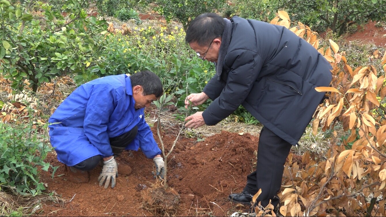 县农业农村局农业服务中心副主任廖仁平说:“果园的春季管理重点是这个病树砍掉之后的补种工作,再一个是施春肥,并抓好病虫害的防控和转绿枝后保花保果工作。”