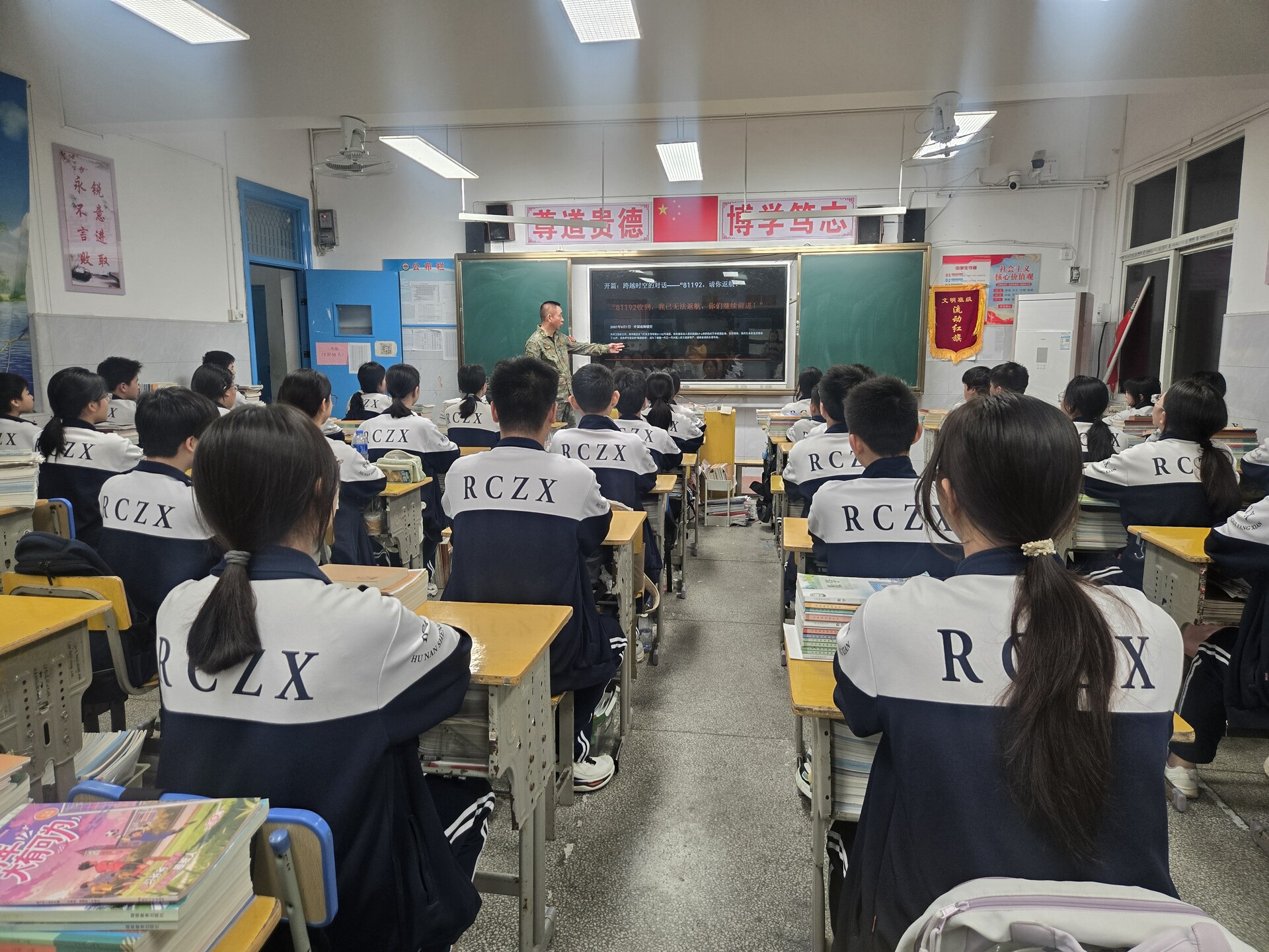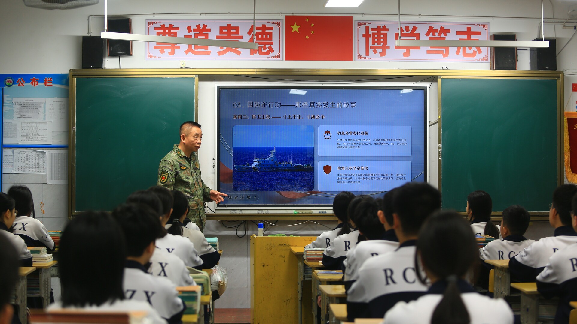 在县蓉城中学,人武部民兵为学生们带来了一堂国家安全讲座。从王伟烈士的“无法返航”到航母编队的“走向深蓝”,讲座展现了我国国防建设发展进程。并结合实际,介绍了可能发生在校园及自身周边威胁国家安全的隐患,告诉大家如何判断、应对、举报危害国家安全的行为。