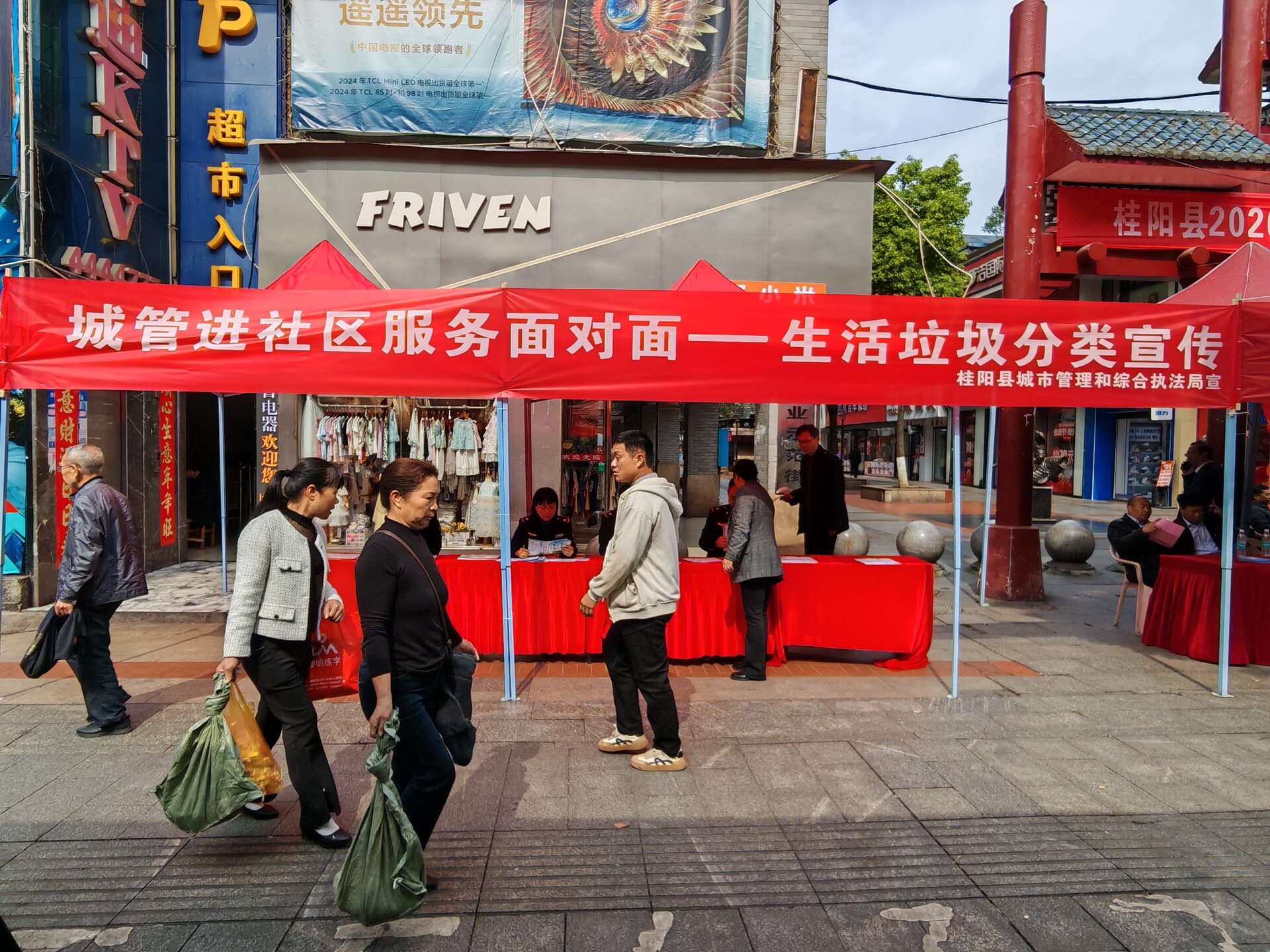 工作人员通过悬挂横幅,发放宣传资料等方式,面对面为群众答疑解惑,细致讲解垃圾分类方式与垃圾分类对保护环境的意义。