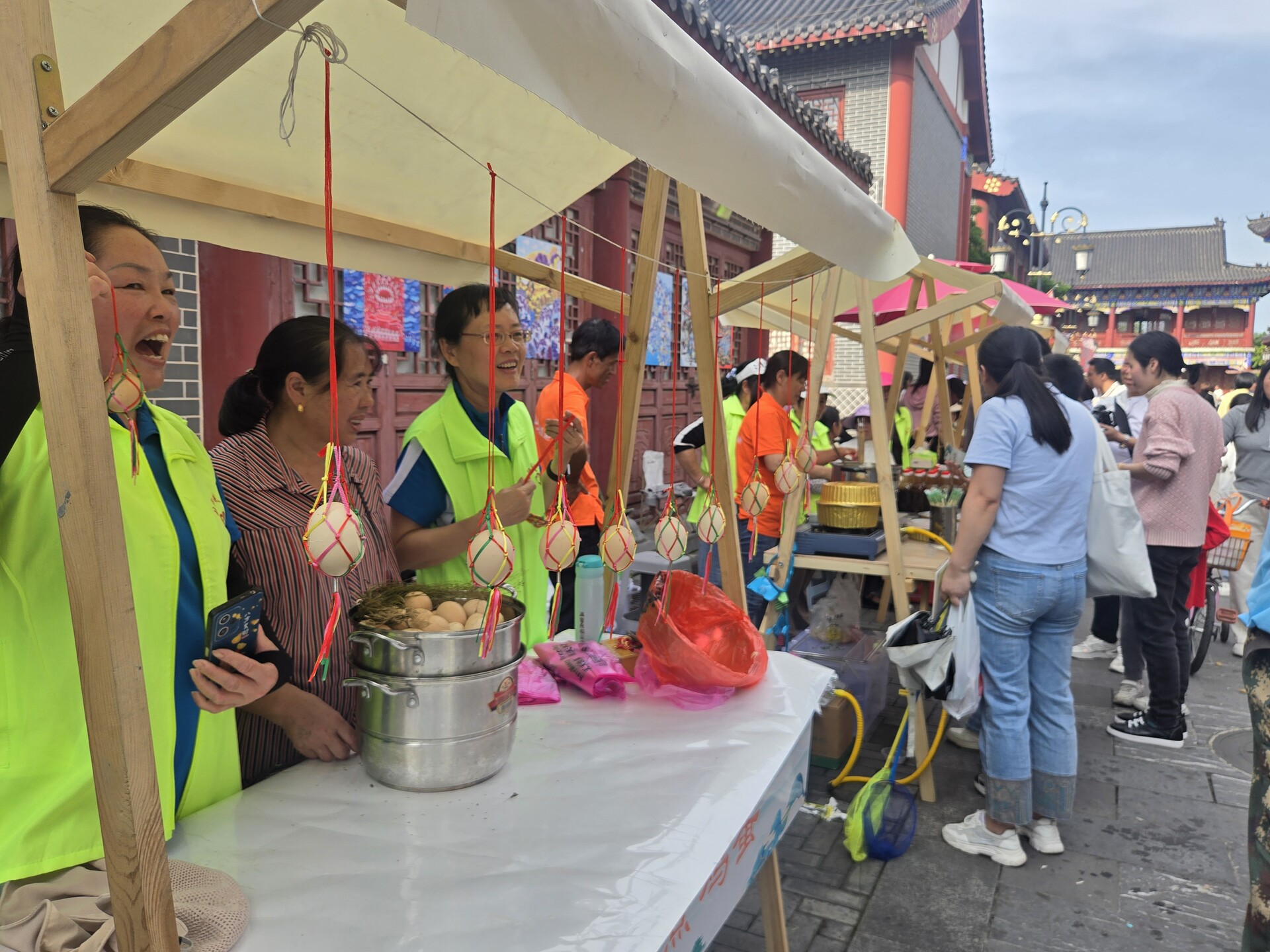 在古戏台两侧,文化园古街化身热闹民俗集市,糖画、桂阳剪纸、湘南木雕、投壶、地菜鸡蛋等十余个非遗、民俗摊位前围满了前来打卡体验的游客。大家通过“沉浸式”打卡民俗活动,在“通关文牒”上集章,用于兑换桂阳饺粑、桂阳卤粉、地菜鸡蛋等特色奖品。