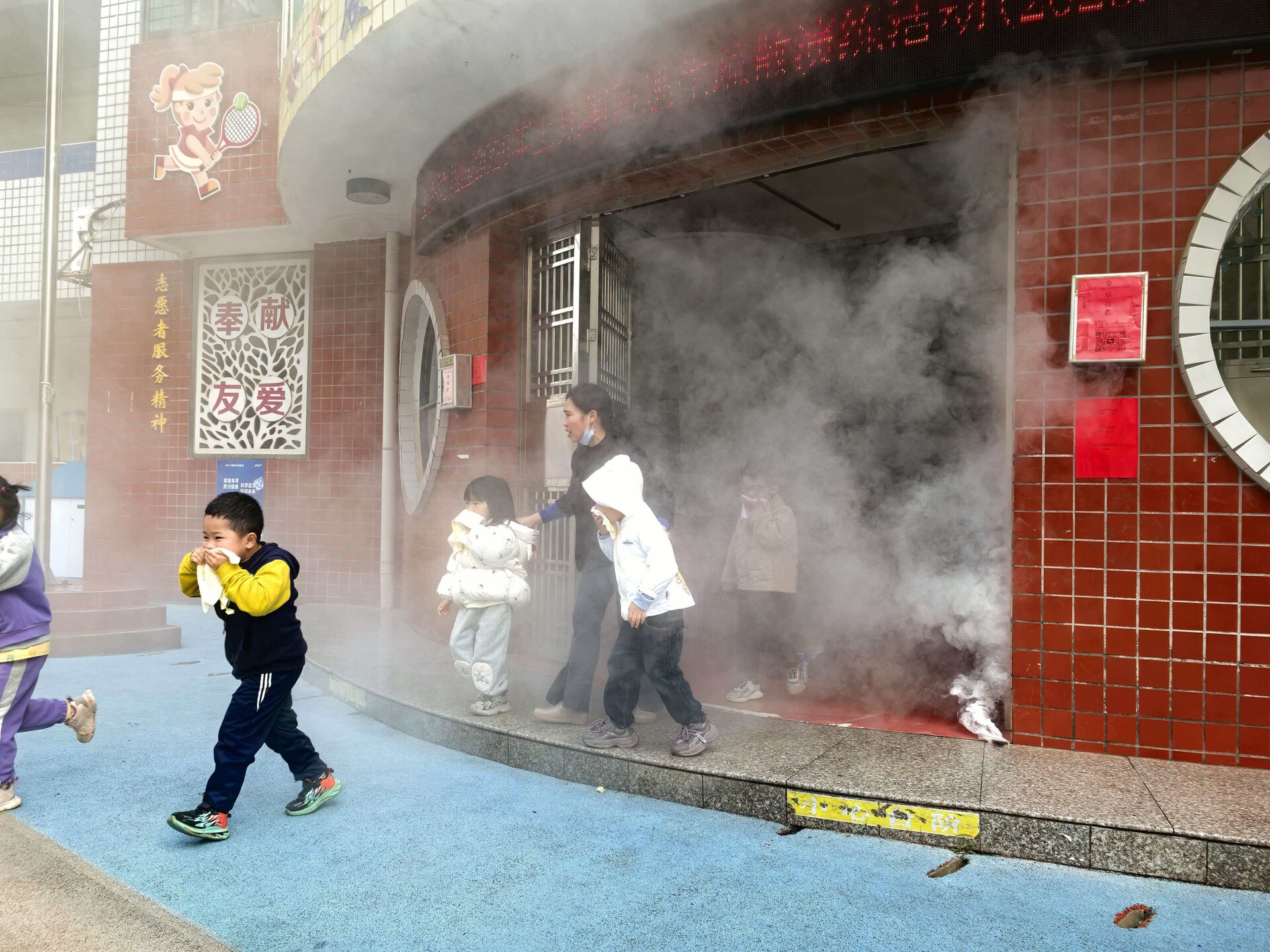 演练中,全园教职工迅速响应、各司其职,立刻组织幼儿拿起湿毛巾,捂住口鼻、弯腰低姿,沿预设疏散路线有序快速撤离教学楼,整个过程紧凑有序,无拥挤慌乱情况。