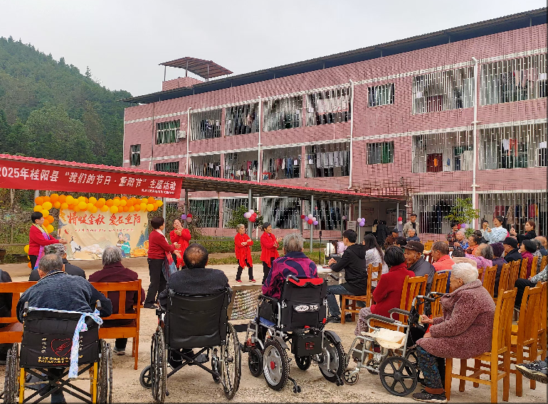10月29日,岁岁重阳,今又重阳。为弘扬“尊老敬老、弘扬孝道”的中华传统美德,落实县文明办精神文明建设与传统节日弘扬要求,黄沙坪街道新时代文明实践所在晚晴耄耋园养老服务中心于10月29日开展2025 年桂阳县“我们的节日・重阳节”主题活动。县委宣传部领导、黄沙坪街道办退休干部、晚晴养老院老人及家属、中医院医疗服务人员、街道新时代文明实践所志愿者等齐聚一堂,共庆重阳佳节。
