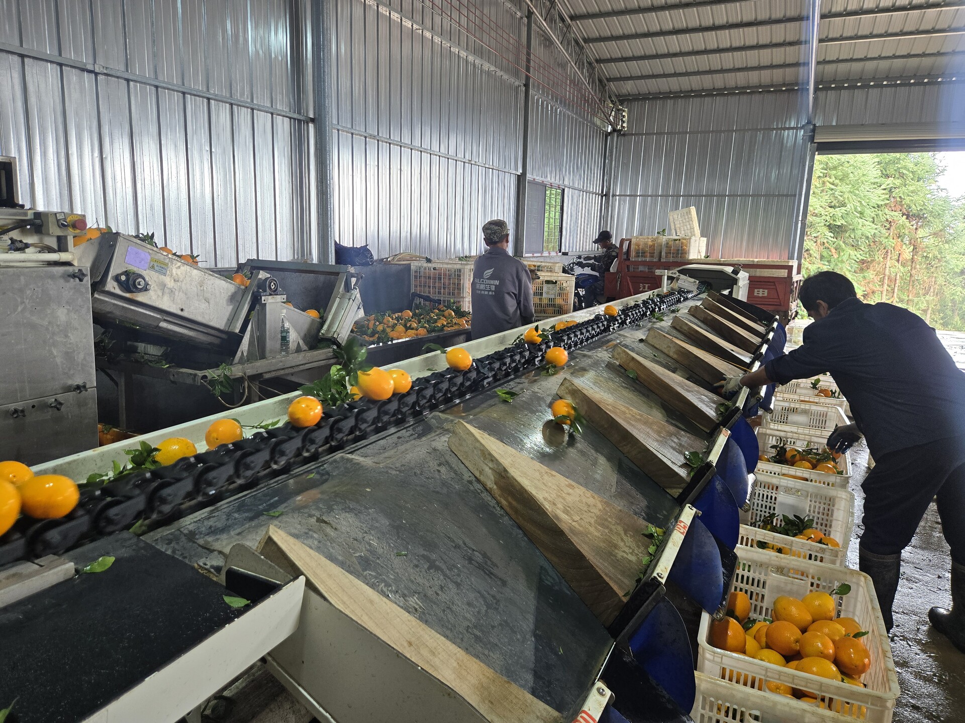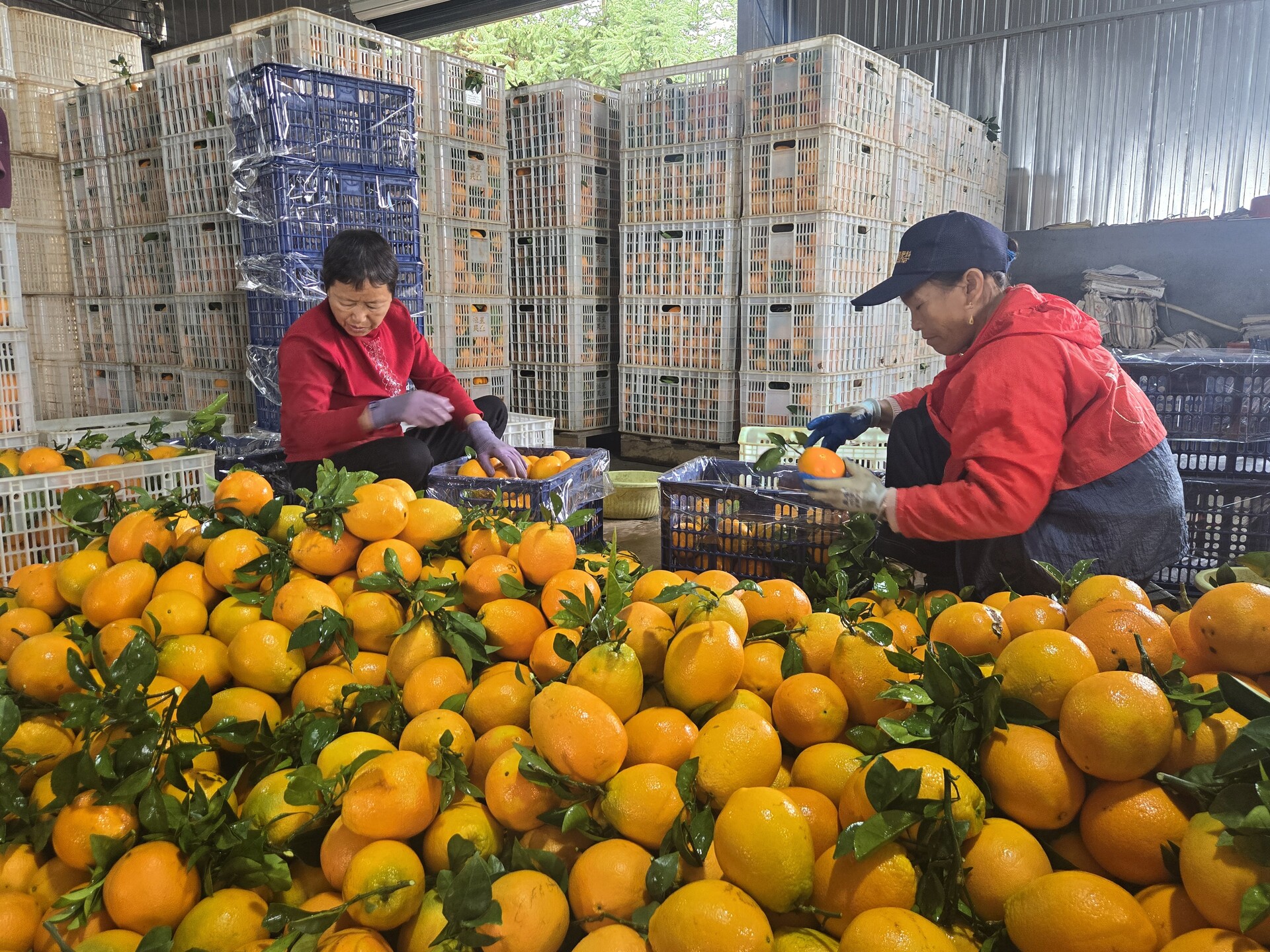 栗山村2019年开始种植脐橙,主要以家庭农场形式合伙经营。经过5年培育,脐橙种植面积1200亩,亩产稳定在2500斤左右,糖度可以达到16度。每年11月初到12月中旬脐橙上市丰收时节,农场都要聘请40-50余名村民前来从事采摘、分拣、打包工作。