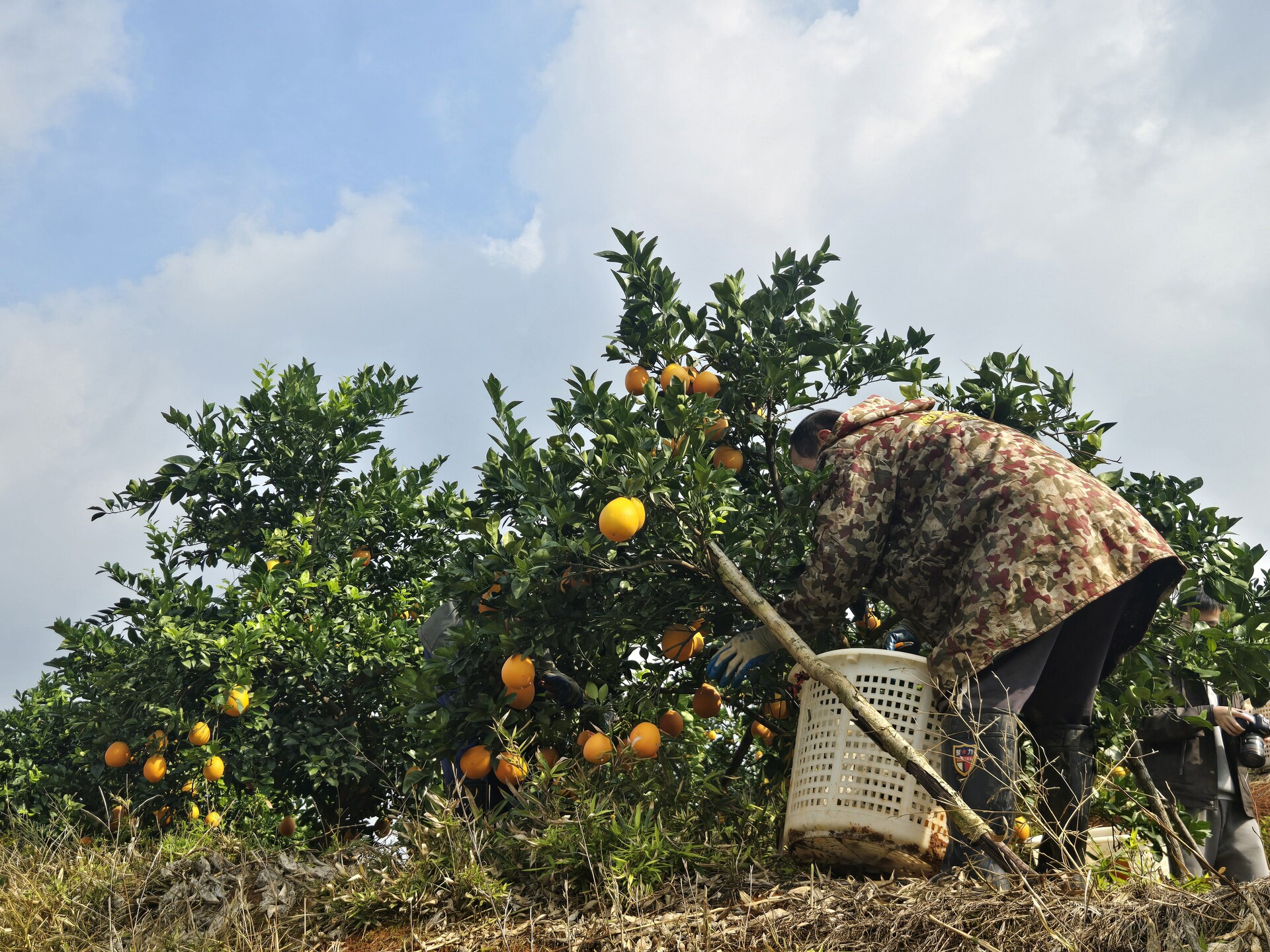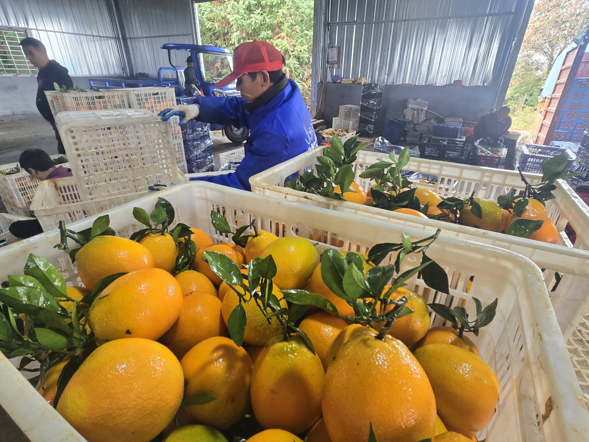 走进浩塘镇栗山村脐橙种植基地,漫山遍野的橙树上挂满脐橙。果园里弥漫着沁人心脾的橙香,果农们三五成群穿梭在橙树间,熟练地采摘、筛选、搬运成熟脐橙,一车车丰收的甜蜜滋味将被拉往分拣线,等待送往一线城市餐桌。
