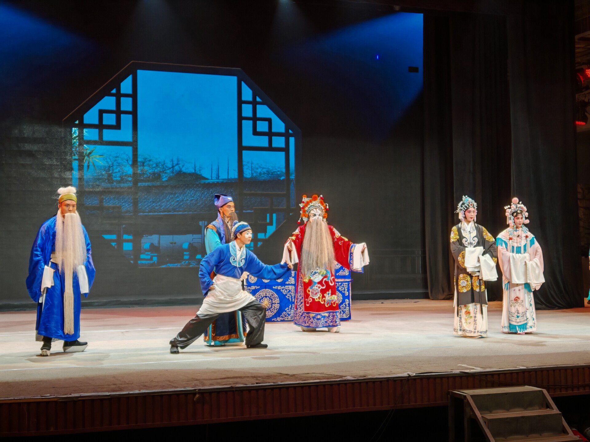 此次演出的剧目为昆曲折子戏《赵武观图》,该剧是传统剧目《八义记》中的一折,最早起源于元杂剧《赵氏孤儿》,后明代改成《八义记》。讲述春秋时期,赵氏一族遭屠岸贾诬陷灭门,唯有遗孤赵武被程婴、公孙杵臼等八位义士舍身救下,抚养成人。此折以“观图”为核心情节,成年后的赵武在程婴指引下,翻看记录家族蒙冤、义士殉难的血图。众演员走位错落有致,念白铿锵与弦乐缠绵相映,眉眼间的忠义与奸佞、悲戚与激昂,随着锣鼓节奏层层递进,每一个身段、每一声唱腔,都将戏文里的恩怨情仇,鲜活铺展在戏台之上。