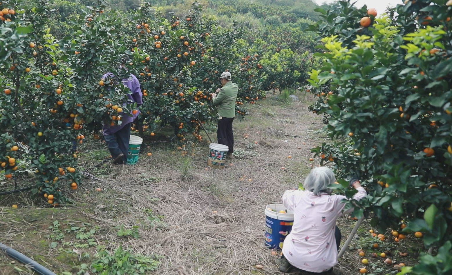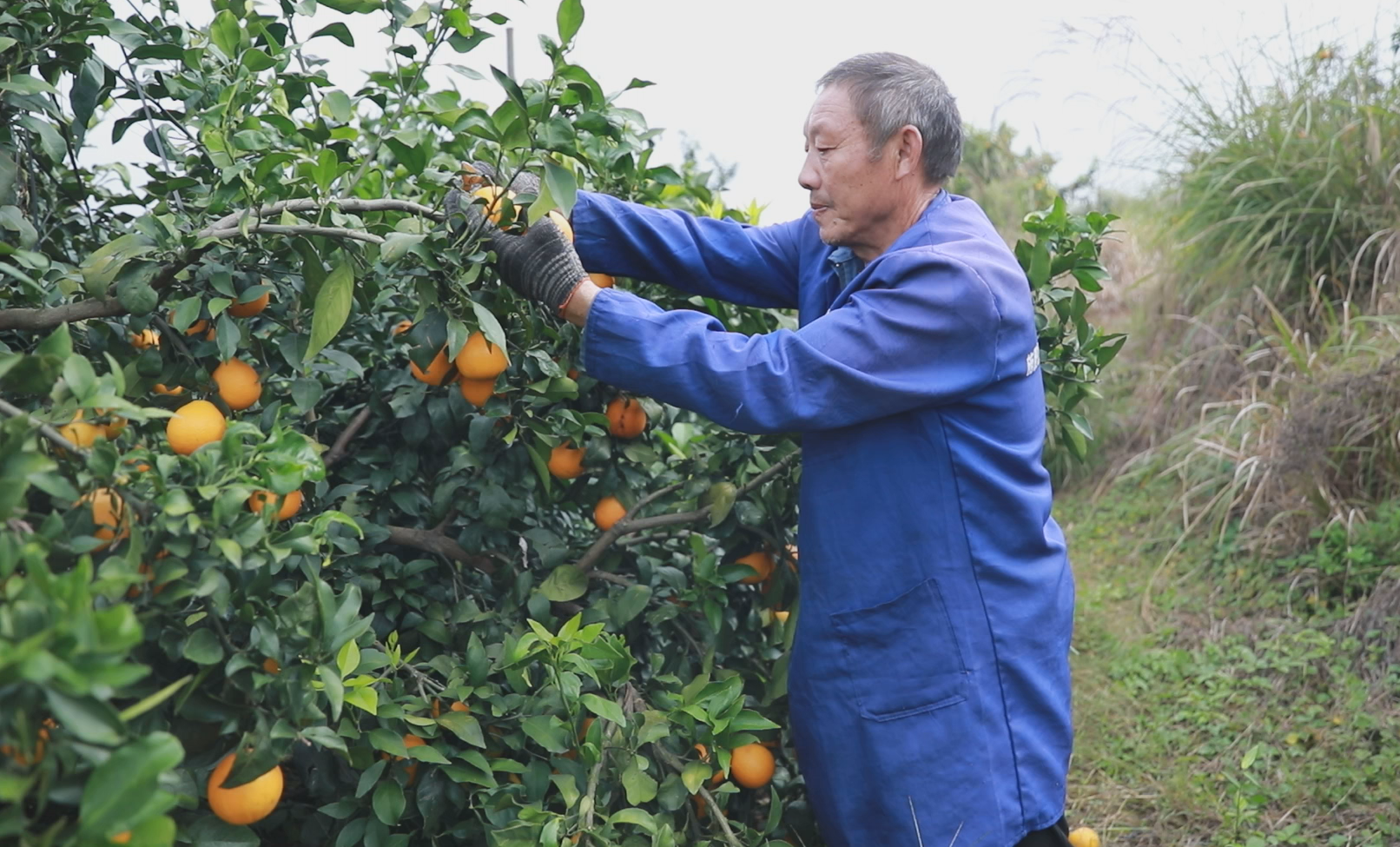漫山遍野的橙树枝繁叶茂,金黄饱满的果实挂满枝头,在阳光照耀下熠熠生辉,浓郁的橙香弥漫山间。果农们穿梭在果树间,采摘、分拣忙得热火朝天,一派硕果累累的丰收图景。