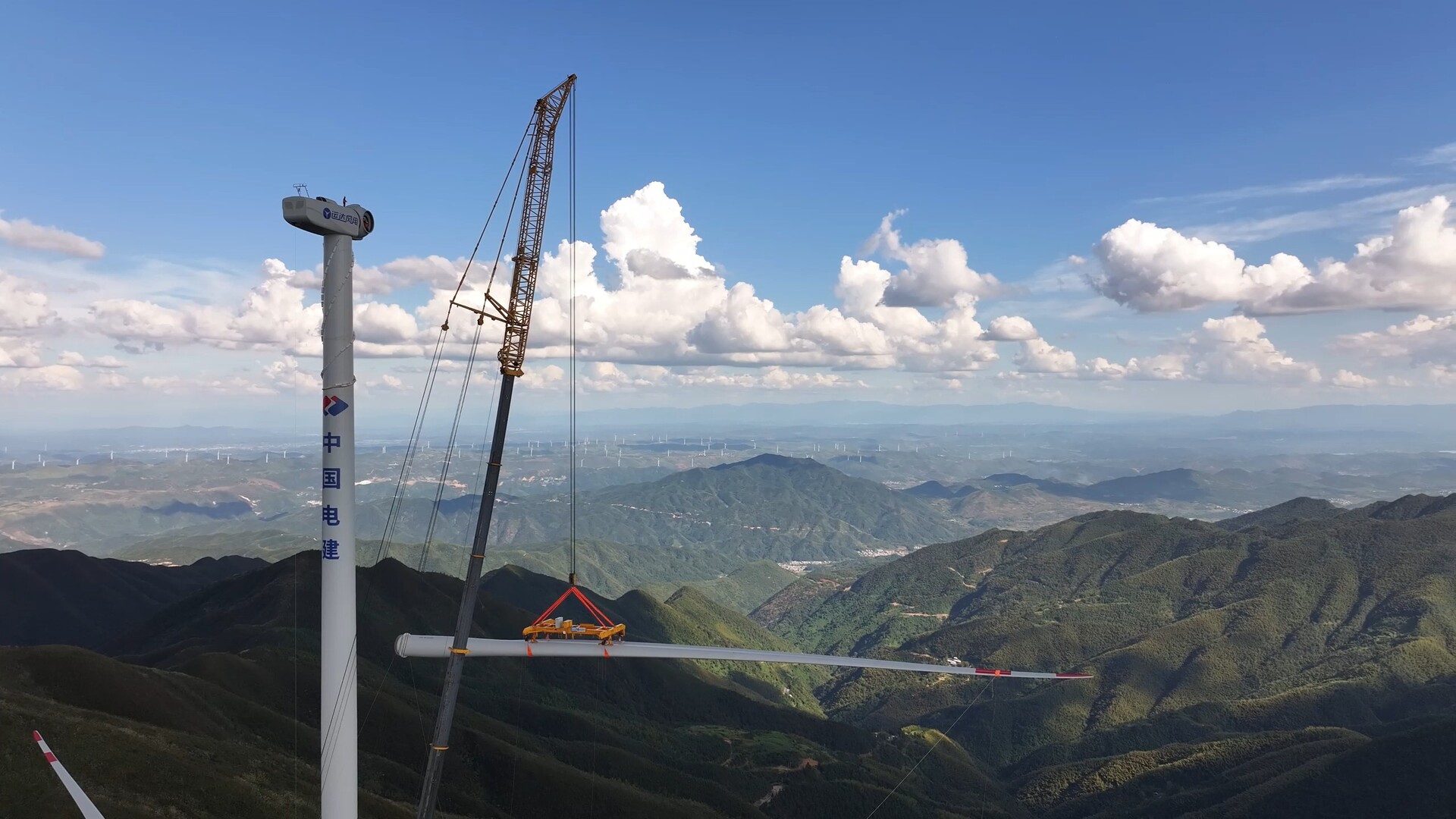 欧阳海风电场二期项目是中电建新能源集团在桂阳投资的第十个风电项目,位于泗洲山,海拔高度在790—1290米之间。项目计划总投资3亿元,设计安装10台单机容量为5兆瓦的风力发电机组,总装机规模为50兆瓦。为确保风机吊装工作顺利开展,项目部加强天气及风力监控,精准抢抓施工窗口期进行施工。