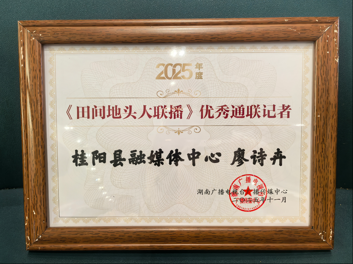 11月11日,在长沙·中国新媒体大会期间,湖南广播电视台广播传媒中心举办"马栏山智慧融媒创造营·数智赋能实训营",百余全国优秀融媒代表齐聚现场交流学习。活动期间,桂阳县融媒体中心捷报频传,一举收获三项重要荣誉:荣获国家广播电视总局5G高新视频多场景应用重点实验室授予的"智慧融媒创新发展引领单位"称号,获评湖南广播电视台广播传媒中心2025年度"《田间地头大联播》优秀共创单位",中心总编室廖诗卉荣获"优秀通联记者"称号。这三项荣誉的获得,标志着桂阳融媒在媒体深度融合和创新发展中迈上了新台阶。