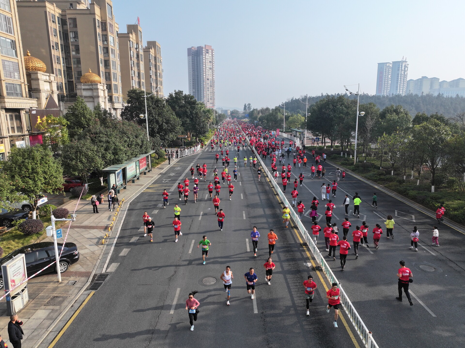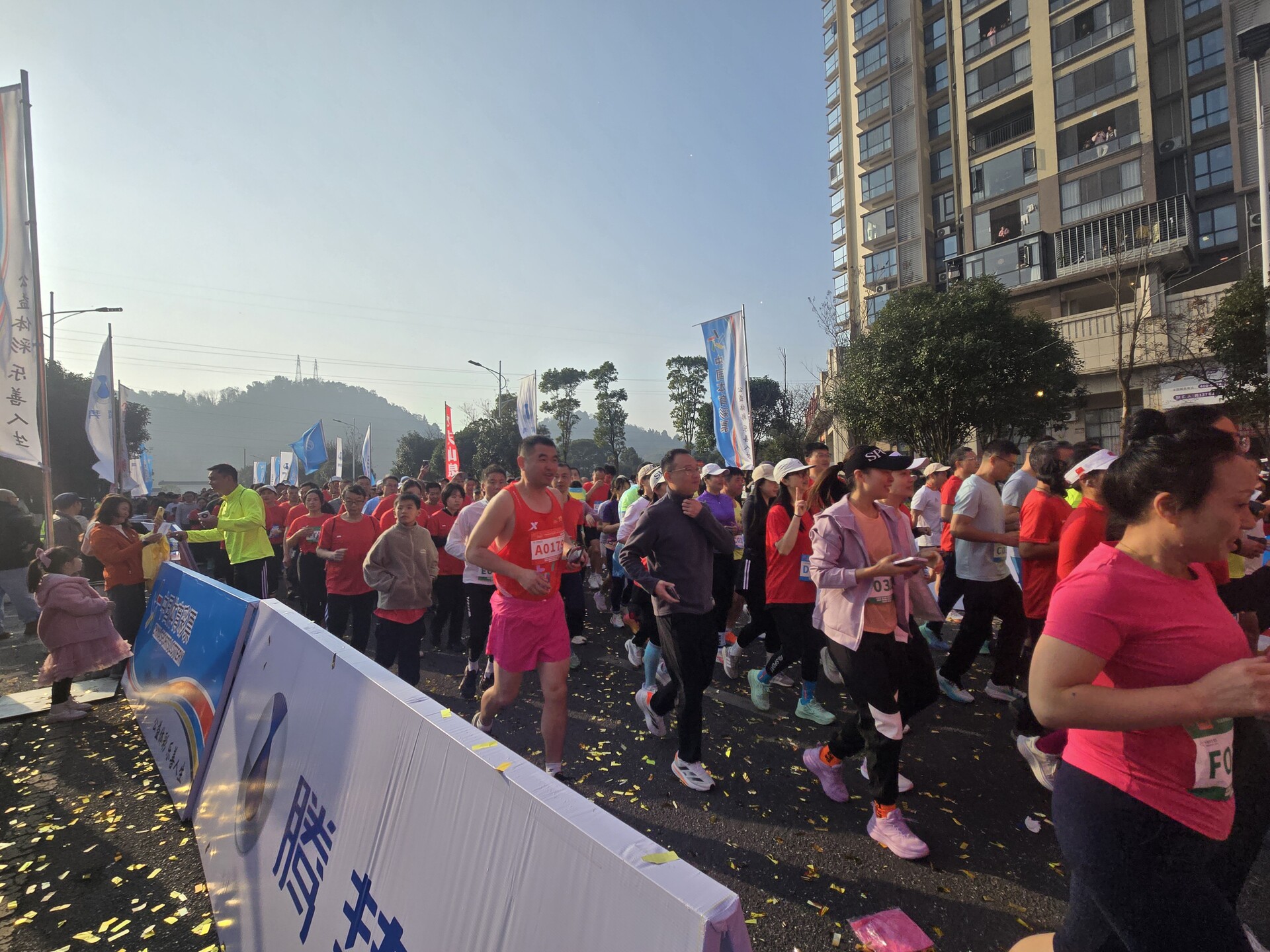 活动现场,赛事氛围热烈。桂阳籍举重世界冠军张旺丽作为护旗手,引领国旗与赛事会旗方阵庄严入场。上午9时,随着赛令枪响,跑者们从文化园古郡城西门站点起跑,在冬日暖阳下形成一道跃动的风景线。张旺丽作为护旗手领跑,为赛事注入冠军精神力量。