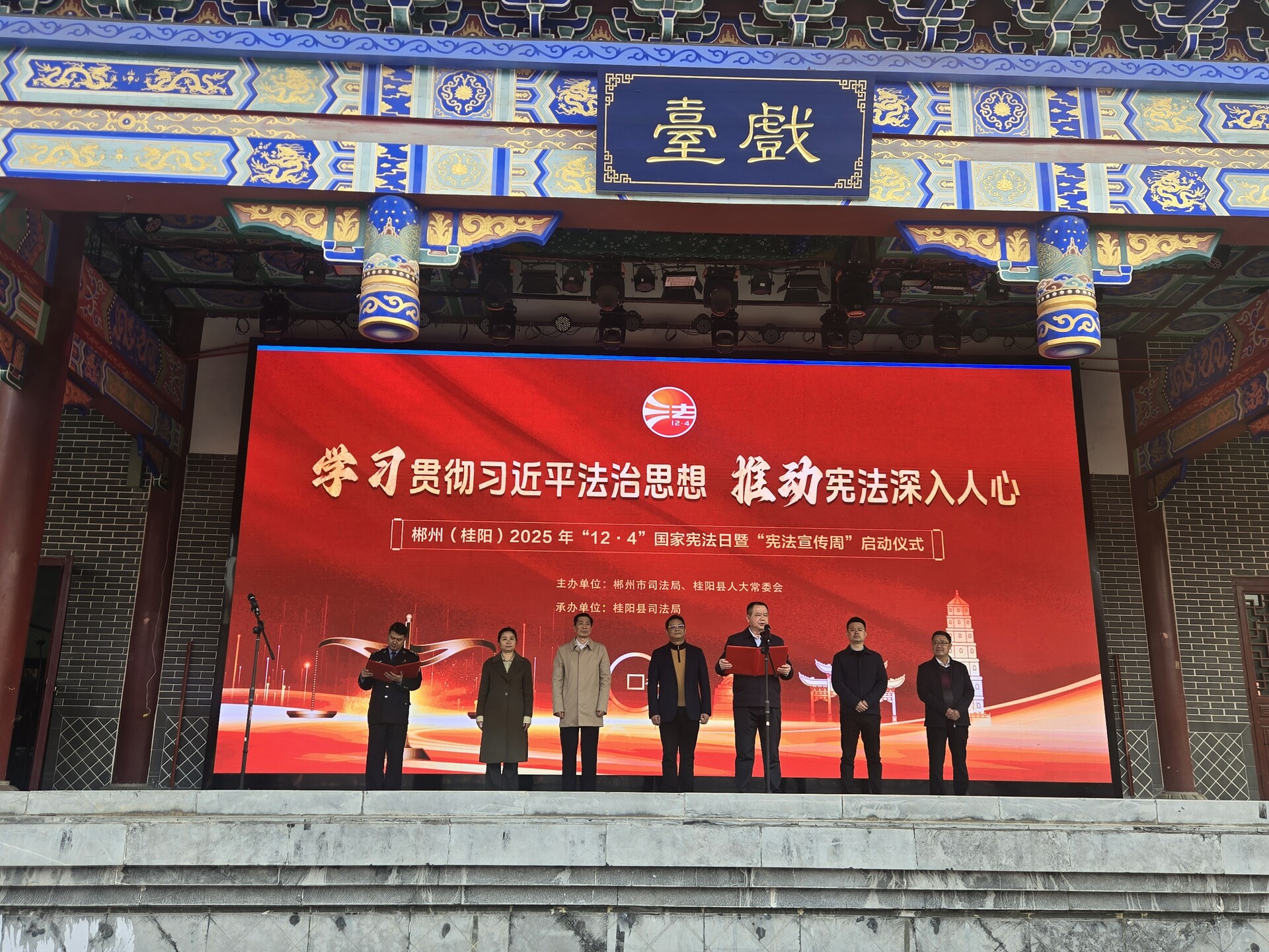12月4日是第十二个国家宪法日,郴州(桂阳)2025年国家宪法日暨“宪法宣传周”启动仪式在我县举行。